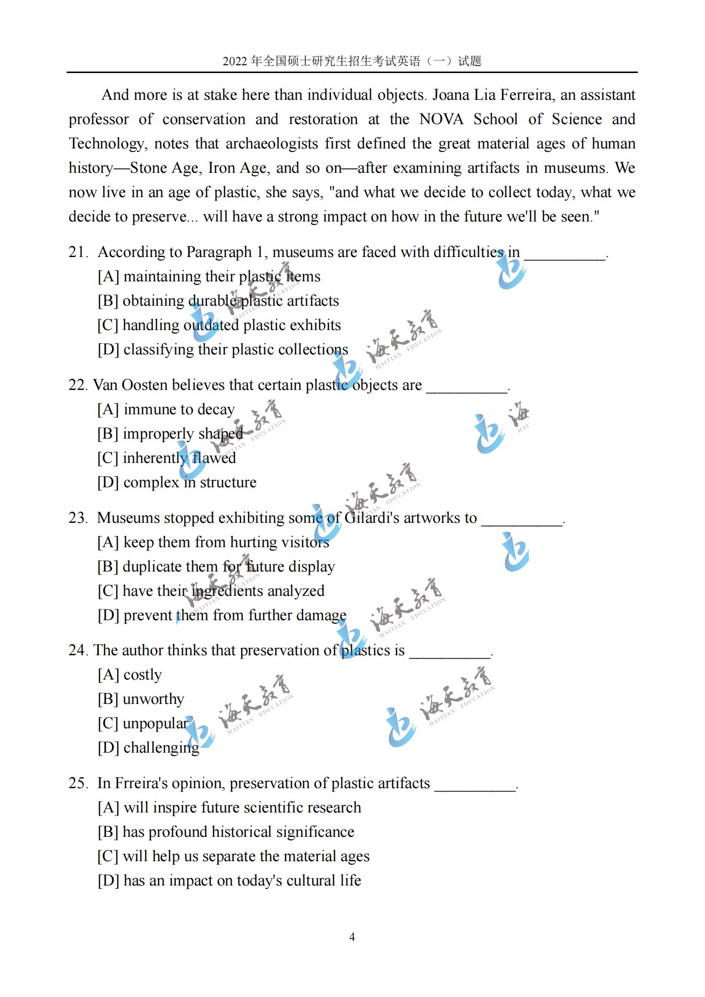 22考研英语考试结束,海天考研整理发布【2022考研真题解析专题】,可以查看22考研英语真题,答案。更多22考研政治真题及答案、22考研数学一真题及答案、22考研数学二真题及答案、22考研数学三真题及答案,请持续关注【2022考研真题解析专题】!