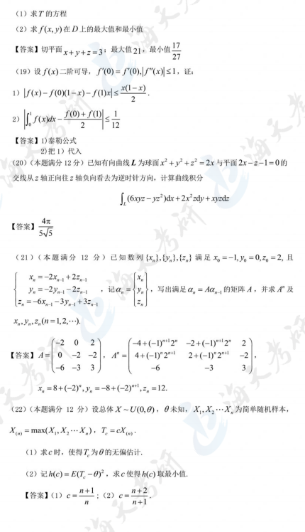 2024全国硕士研究生招生考试数学(一)真题—解答题